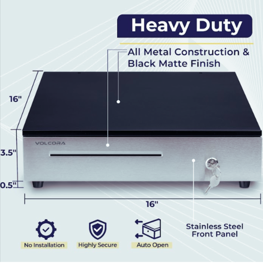 The Volcora 16" Black Cash Drawer offers durability and a professional design.